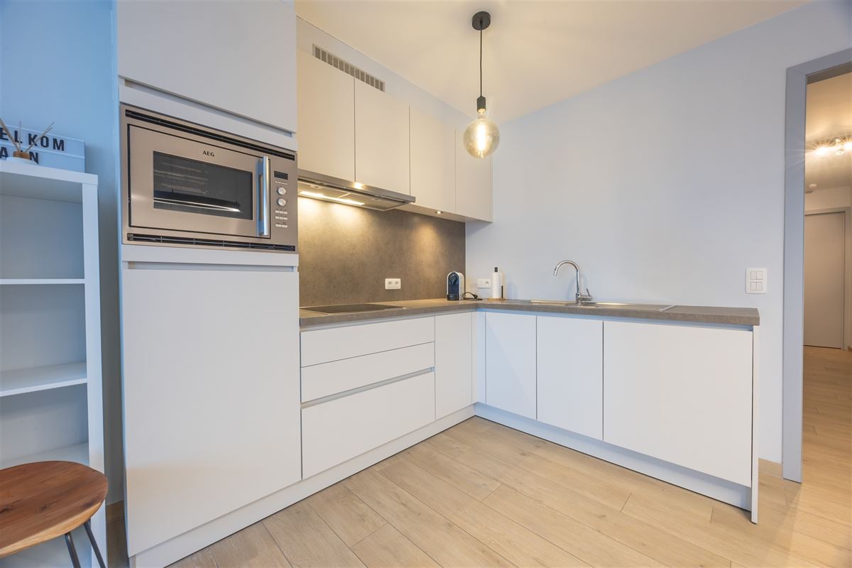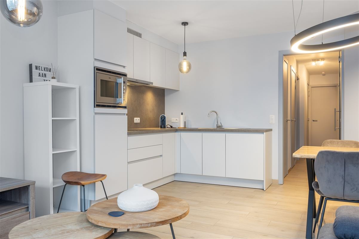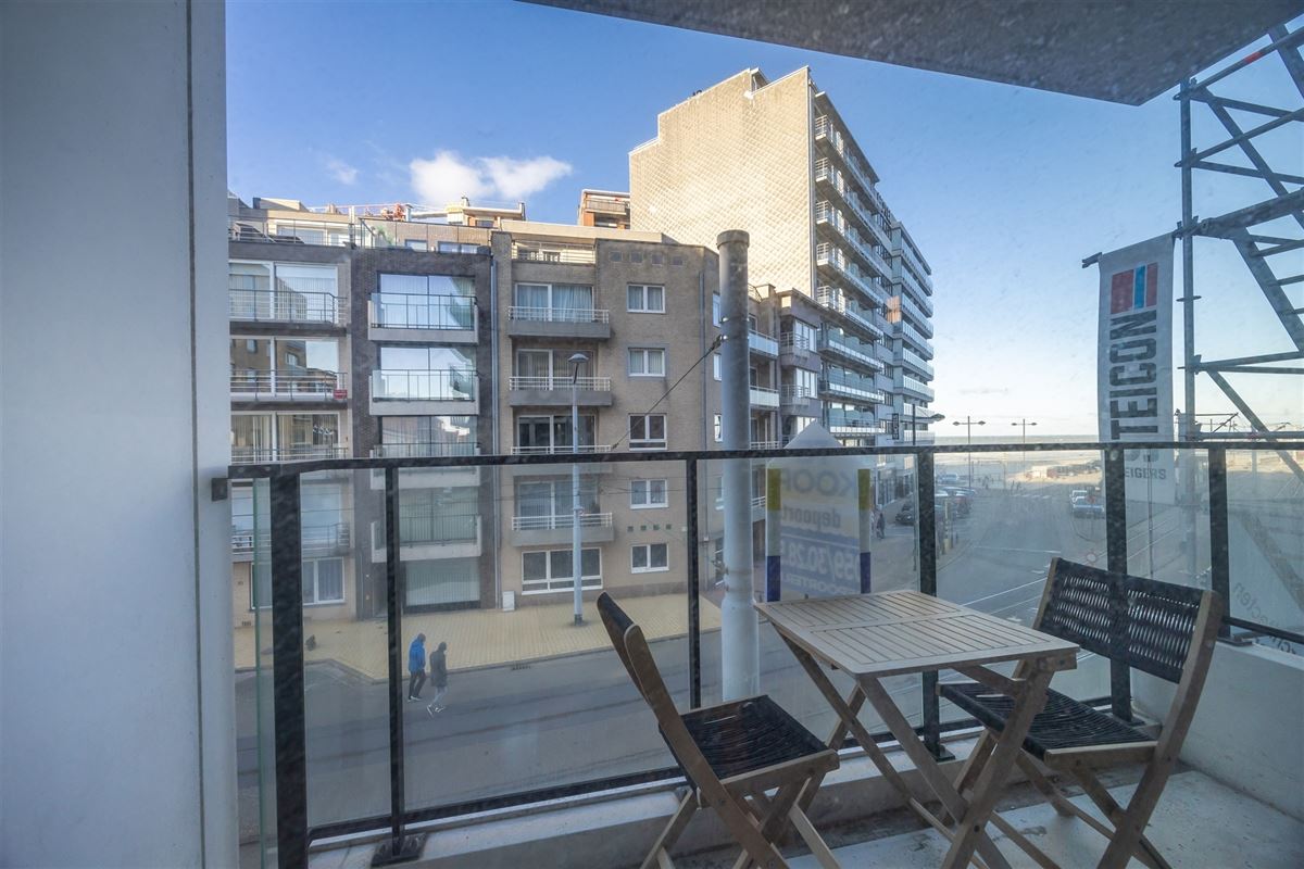 Zeer recent ( opgeleverd in februari 2021) appartement met zijdelings zeezicht op zeer centrale ligging. Indeling : inkomhal, woonkamer met open, volledig geïnstalleerde keuken, berging, apart toilet, badkamer met douche en lavabomeubel, 2 slaapkamers, terras en private kelderberging. Het appartement wordt gemeubeld verkocht. Conforme elektrische installatie. Gunstig epc label A.